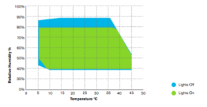 | Range Umidità | Lights on: 40 to 80% rH Lights off: 40 to 90% rH< |