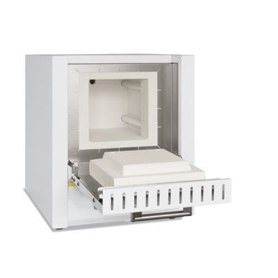 Forno a muffola da laboratorio con Temperatura Massima di 1100 °C Disponibili volumi da 1 – 2 – 6 – 14 litri Struttura esterna del forno in lamiera di acciaio inox, riscaldamento sui due lati mediante elementi riscaldanti in tubi di vetro quarzo, isolamento in fibra. Corpo del forno a muffola con doppia parete a bassa dispersione termica per maggiore stabilità e basse temperature sulla lamiera esterna. Porta ribaltabile del forno che funge anche da piano di lavoro. Camino per l’aria di scarico sulla parete posteriore. Alimentazione monofase 220V.