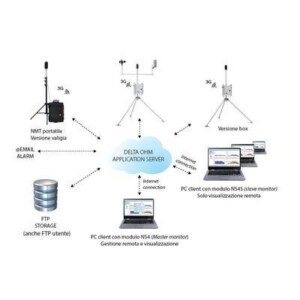 Stazione di monitoraggio Delta Ohm HD2011NMT per il monitoraggio del rumore come unità singola o in una rete di misurazione. Stazione di monitoraggio Delta Ohm HD2011NMT è in grado di lavorare senza l’ausilio di un’operatore nelle vicinanze, in installazioni permanenti, semi permanenti o portatili a seconda della versione di interesse. Ogni singola unità o un’intera rete di monitoraggio può essere controllata e completamente gestita in remoto attraverso l’utilizzo del nuovo software Delta Ohm NS4 “Monitor”. Gli interi dati memorizzati di rumore e meteorologici dalla stazione di rumore HD2011NMT possono essere direttamente acquisiti, registrati, visualizzati e trasmessi a distanza.