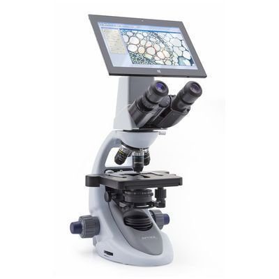 Microscopio Optika B290TB è il risultato di una perfetta fusione tra anni di esperienza nel settore microscopia e uno studio di design raffinato da parte della Optika. Questo microscopio e’ dotato di un Tablet da 10 pollici che permette di visionare direttamente sullo schermo l’analisi effettuata con il microscopio e poterlo collegare tramite Bluetooth 4.0 e Wireless. Testata binoculare inclinata 30° e ruotabile a 360° obiettivi E-Plan corretti a 160mm 4X, 10X, 40X, 100x. Sorgente luminosa tipo X-LED³ con LED bianco