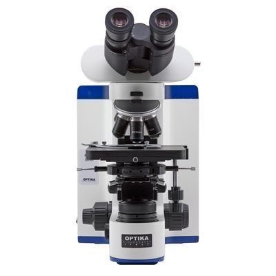Microscopio da laboratorio Optika B-800PH per applicazioni di routine e di ricerca con stativo in metallo pressofuso, ad alta stabilità ed ergonomia, per osservazioni in luce trasmessa, versione per analisi in contrasto di fase.